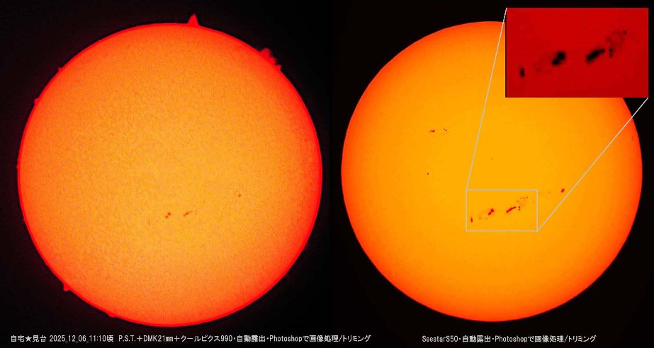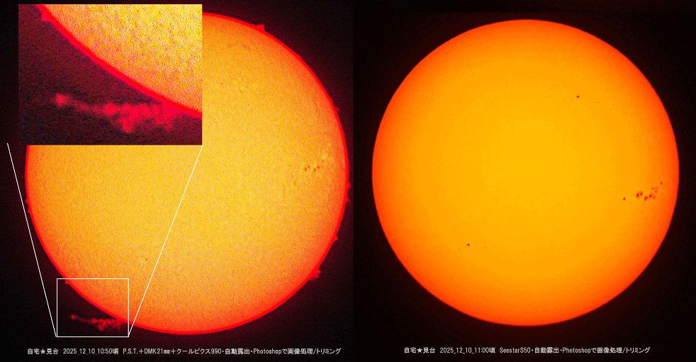 | 太陽面シリーズ12月分 | 土星の輪の消失? | サイボク星を見る会 | 太陽面シリーズ11月分 | ISSシリーズ | 2025R2(スワン)彗星 |